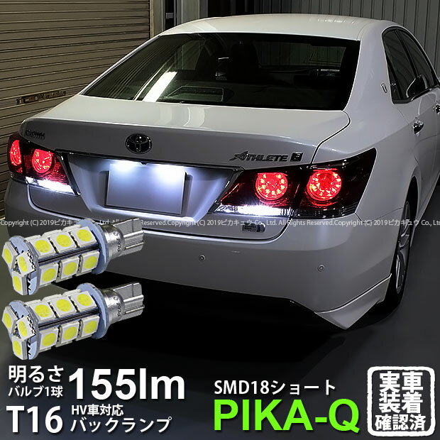 【後退灯】トヨタ クラウンアスリートハイブリッドAWS210 バックランプ対応LED T16 3chip HYPER SMD 18連ショートウェッジシングル球 無極性タイプ 1セット2個入【ハイブリッド車対応LED】(1-D-8)