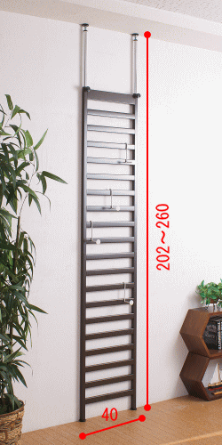サイズ サイズ: (約)幅40×奥行4×高さ202〜260cm フック出幅約7cm 材質 スチール(エポキシ樹脂粉体塗装) 重量:6Kg 備考 日本製 組立式 付属品:フック4個付き メーカー在庫切れの場合もございます。